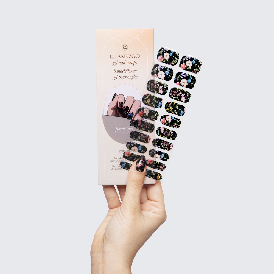 Our GLAM & GO gel nail wraps ensure that no matter how complex your chosen nail design, the application process remains incredibly simple. Our GLAM & GO gel nail wraps require no glue, base coat, or top coat—just peel them off the packaging, apply them to your nail, trim to size, cure twice, and voilà!